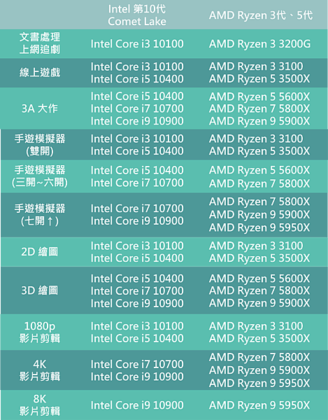 好的,接下來就直接介紹什麼需求需要用到什麼等級的 CPU